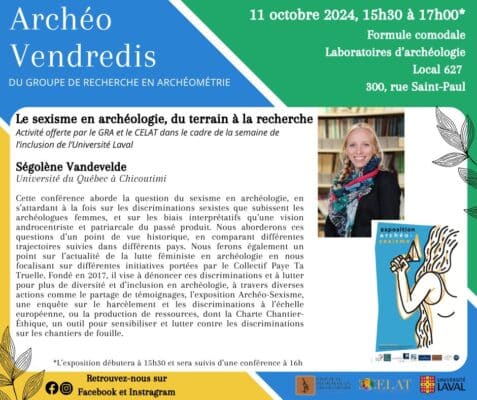 Dans le cadre de la Semaine de l’inclusion de l’Université Laval et des Archéo-vendredis, le Groupe de recherche en archéométrie (GRA) et le CELAT vous invitent à une activité spéciale […]