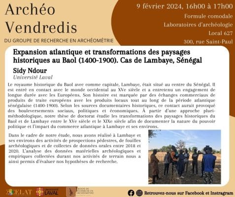 Dans le cadre des Archéo-vendredis, notre membre étudiant Sidy Ndour (UL), qui a soutenu récemment sa thèse de doctorat en archéologie, fera une présentation intitulée « Expansion atlantique et transformations […]