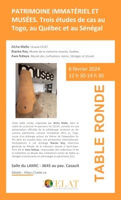 Table ronde « Patrimoine immatériel et musées. Trois études de cas au Togo, au Québec et au Sénégal »