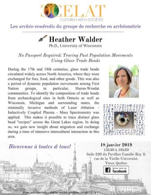 Le premier archéo-vendredi, de la session d’hiver 2019, aura lieu le vendredi 18 janvier. La conférence No Passeports Required: Tracing Past Population Movements Using Glass Trade Beads sera donnée par Heather Walder […]