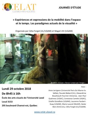 Dans le cadre de la journée d’étude « Expériences et expressions de la mobilité dans l’espace et le temps. Les paradigmes actuels de la visualité » organisée par Célia Forget (CELAT) et […]