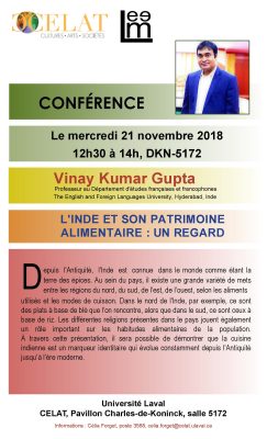 Laurier Turgeon (CELAT) reçoit Vinay Kumar Gupta, professeur au Département d’études françaises et francophones de The English and Foreign Languages University (Hiderabad, Inde), dans le cadre de la bourse du Shastri […]