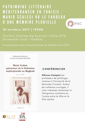 Le mercredi 18 octobre prochain, à 19h00 salle DKN-5172, l’IPAC accueillera, Alfonso Campisi, professeur à l’université de la Manouba (Tunisie) pour une conférence intitulée : Patrimoine littéraire méditerranéen en Tunisie […]