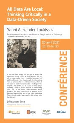 *Visionnez la conférence sur la vidéothèque du CELAT. Le CELAT est ravi d’accueillir un conférencier international en mode virtuel ce printemps. Yanni Alexander Loukissas, professeur associé en médias numériques à […]