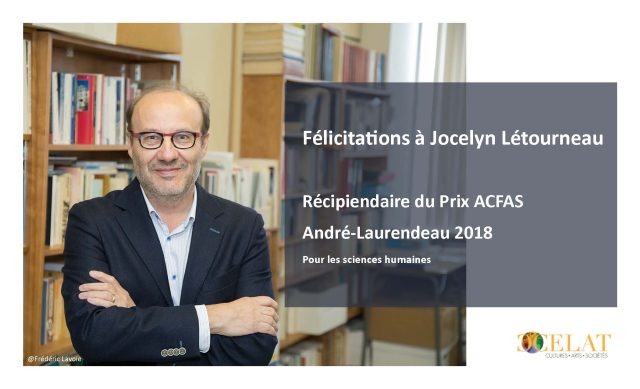 Le Centre de recherche Cultures-Arts-Sociétés (CELAT) est heureux d’annoncer que Jocelyn Létourneau, membre régulier du Centre et professeur titulaire du Département des sciences historiques de l’Université Laval, est récipiendaire du […]