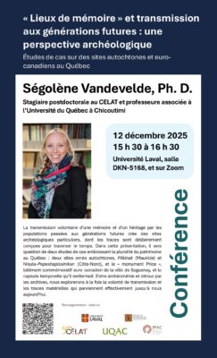 Dans le cadre du stage postdoctoral qu’elle réalise au CELAT, Ségolène Vandevelde (Université du Québec à Chicoutimi) présentera la conférence « “Lieux de mémoire” et transmission aux générations futures : […]