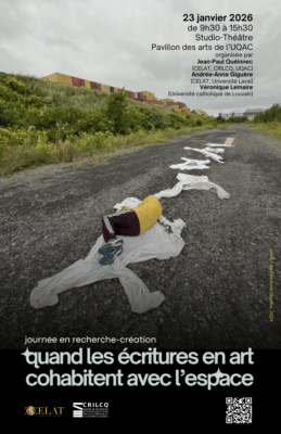 Jean-Paul Quéinnec (CELAT, UQAC), Andrée-Anne Giguère (CELAT, UL) et Véronique Lemaire (Université catholique de Louvain) organisent une journée en recherche-création sur le thème Quand les écritures en arts cohabitent avec […]